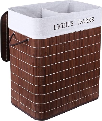 Vesgantti Panier A Linge Pliable En Bambou 100l Rangement Linge De 2 Compartiments Multifonction Avec Poignee Couvercle Et Doublures Amovibles Lavable Brun Amazon Fr Cuisine Maison