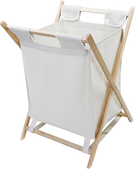 Panier A Linge Sale Pliant Pliable En Bois Et Tissu Ecru Amazon Fr Cuisine Maison
