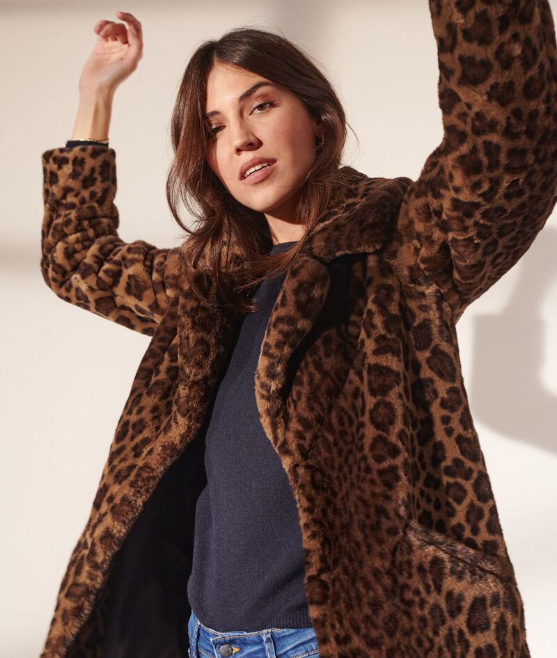 Manteau Effet Fourrure Imprime Leopard Leo Noir Etam
