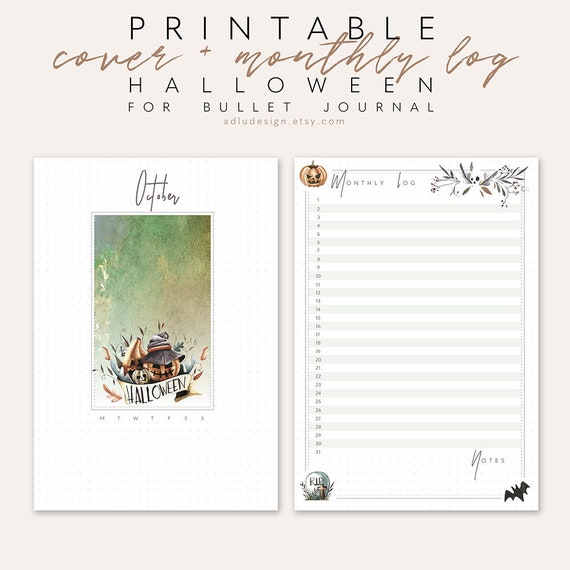 Halloween Monthly Log Printable Minimal Bullet Journal Etsy