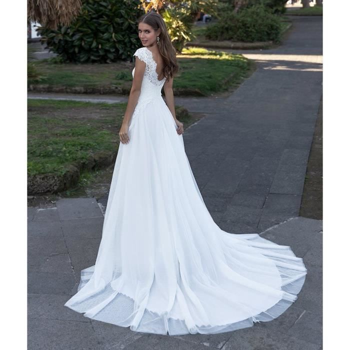 Vkstar Robe De Mariage Style Boheme Bretelle Dos Nu Robe Mariee Femme Tulle Et Dentelle Arabesque Blanc Taille Personnalisee Amazon Fr Vetements Et Accessoires