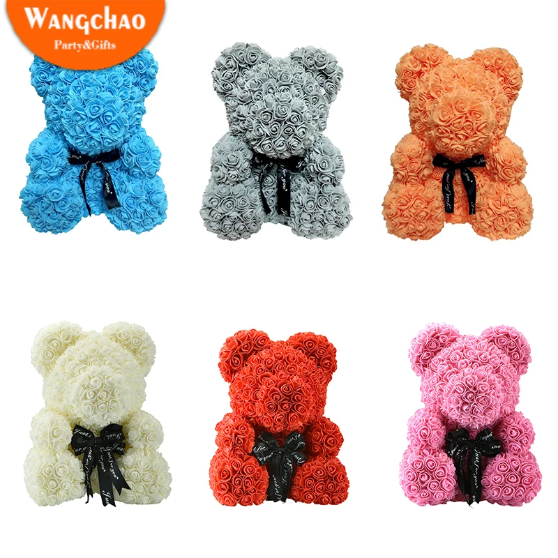 25 40cm Rouge Rose Ours En Peluche Rose Fleur Artificielle Saint Valentin Cadeau De Fete De Mariage Decoration De Noel Petite Amie Cadeaux Aliexpress