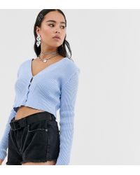 Inspired Cardigan Court Boutonne Sur Le Devant Style Annees 90 Synthetique Reclaimed Vintage En Coloris Bleu Lyst