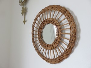 Grand Miroir Soleil Rond Mural En Rotin Annees 50 60 Vintage Ebay