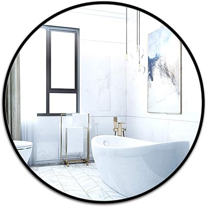 Miroir Rond Grand Miroir Mural Miroir Circulaire En Metal Noir Miroir Mural Moderne Pour Chambre A Coucher Salle De Bain Salle De Bain Salon Entrees Amazon Fr Cuisine Maison