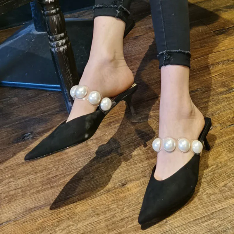 Chic Bout Pointu Perles Bande Pompes Femme Slingback Mujer Bombas Mince Talons Hauts Chaussures Femmes Troupeau Prearl Clair Ceinture Pompes Aliexpress