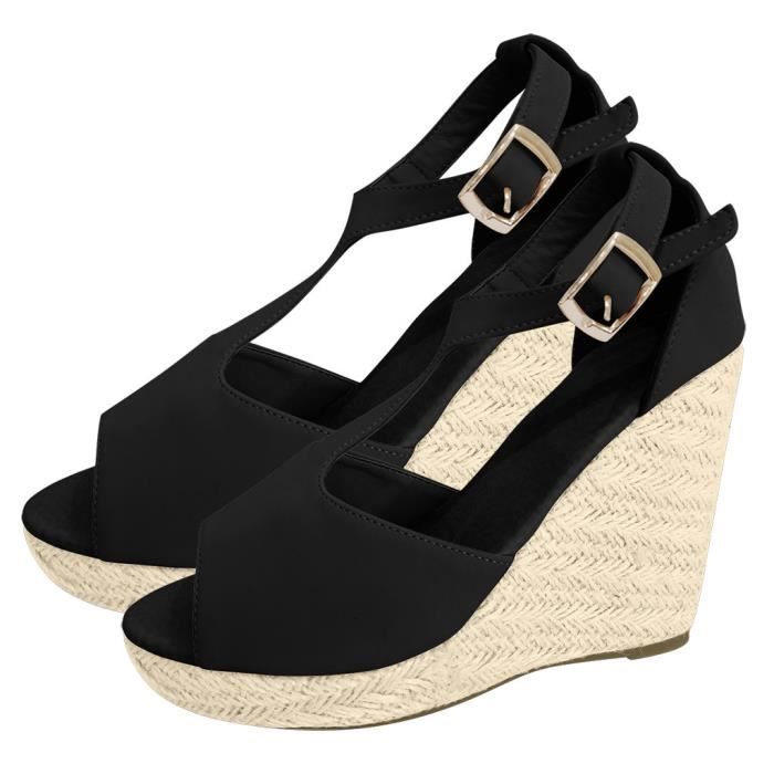 Poisson Bouche Compensees Chaussures Femme Casual Chic Laser Cut Talons Sandales Fermeture A Glissiere Sandal Noir Noir Achat Vente Sandale Nu Pieds Cdiscount