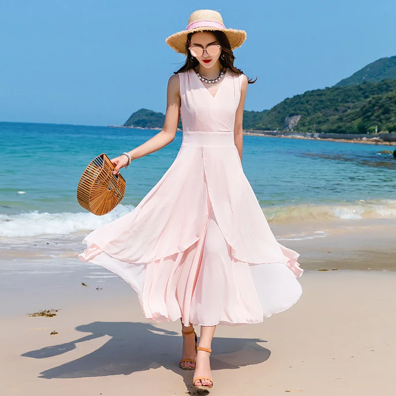 Mousseline De Soie Femmes Boho Vetements Hippie Chic Partie Soiree Robes Lumiere Rose Robe D Ete Plage Tunique Femme Aliexpress