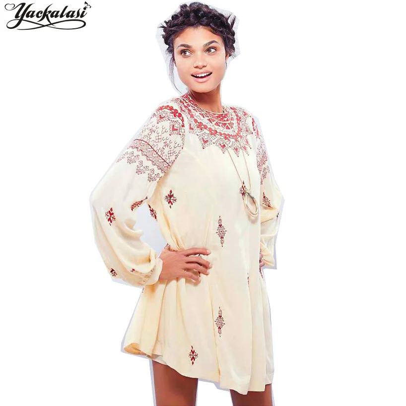 Yackalasi Femmes Dress Plus La Taille Floral Broderie Vestidos O Cou A Manches Longues Marque Vintage Hippie Chic Boheme Vetements Des Gens Aliexpress