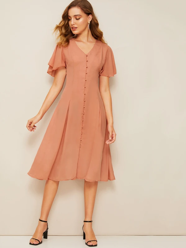 Robe Style Annees 60 Avec Manches Papillon Et Boutons Mode En Ligne Shein France