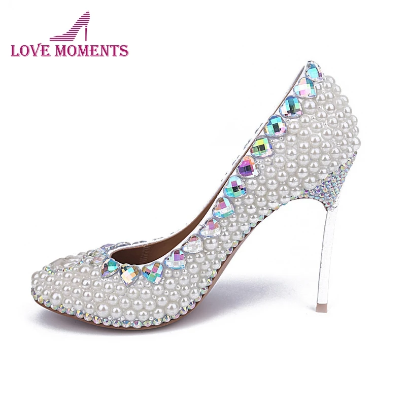 Chaussures De Mariage A Talon Aiguille Argente Pour Femmes Chaussures De Mariee Confortables A Plateforme Perles Blanches Strass A Talon Mince Pour Les Fetes Aliexpress