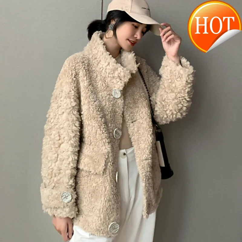 Manteau De Fourrure Vraie Femme Laine Veste Automne Hiver Manteau Femmes Vetements Coreen Vintage Mouton Shearling Hauts Veste Femme Zt4297