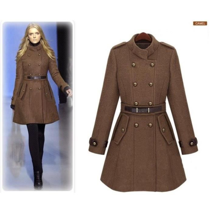 Manteau Veste Femme Manteau Longue En Laine Orn Marron Achat Vente Manteau Caban Cdiscount
