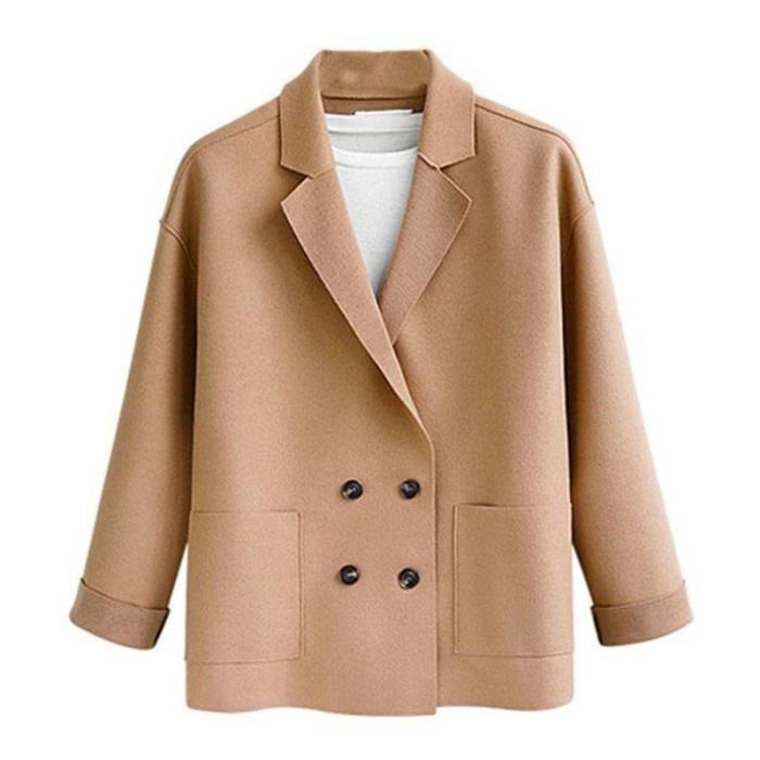 Veste En Laine Double Boutonnage Manches Longues Decontracte Femme Blouson Gris Clair Manteaux Hauts