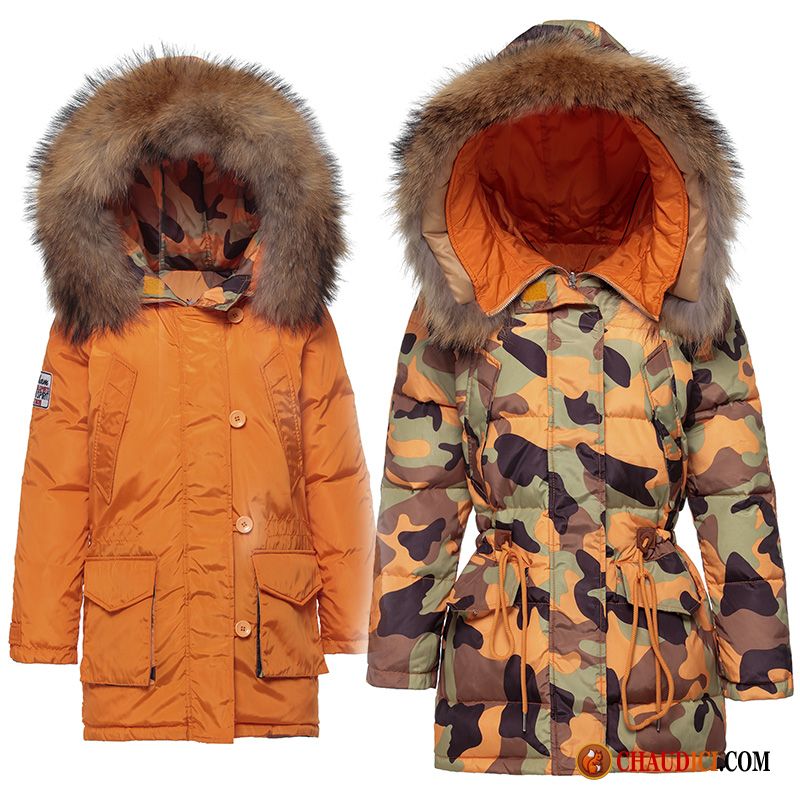 Doudoune Femme Brillante Noir Chameau Camouflage Epaissir Manteau Slim Grand Col De Fourrure Pas Cher