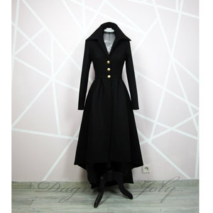 Manteau Long En Laine Noir Femme Manteau A Queue De Pie Etsy