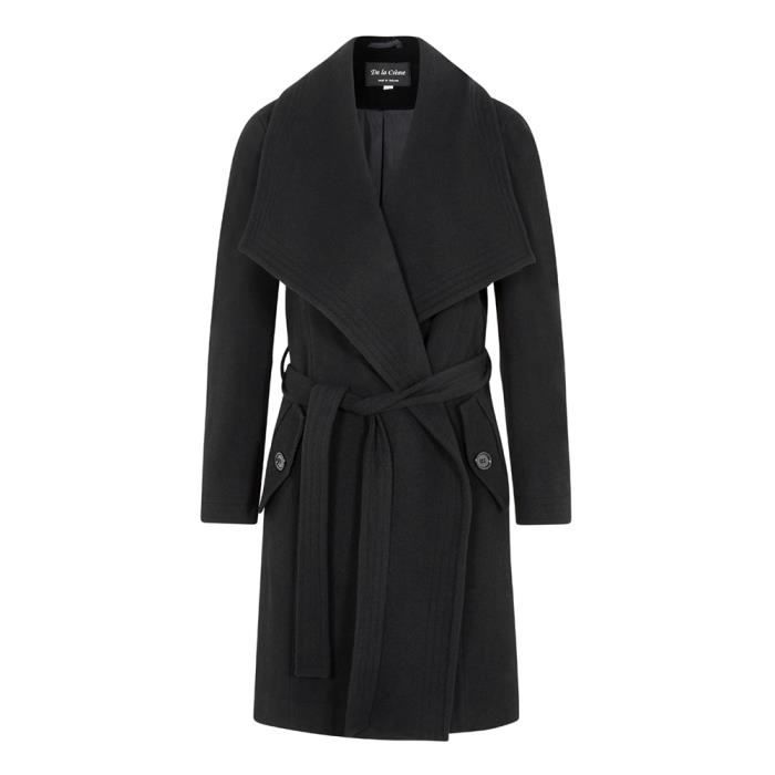 De La Creme Laine Et Cachemire Manteau Femme Avec Grand Col Manteau Portefeuille Ceinture Avec Grand Col Et 2 Poches Multi Noir Achat Vente Manteau Caban Soldes