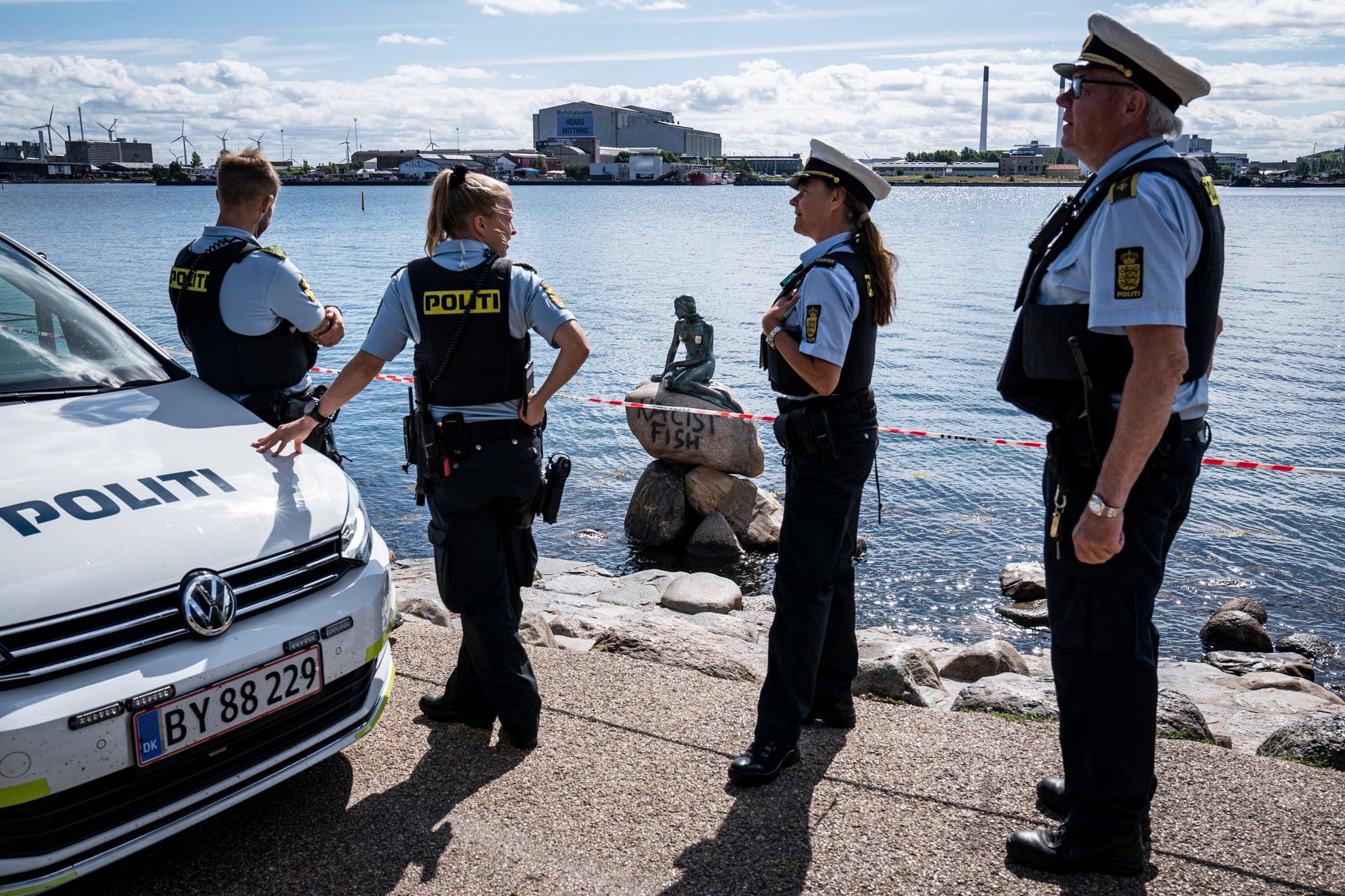 A Copenhague, au Danemark, la Petite Sirène a été vandalisée, vendredi 3 juillet Une personne a inscrit les mots « Racist Fish » (poisson raciste en anglais) sur son socle. Une des icônes les plus appréciées du Danemark, la Petite Sirène est apparue pour la première fois dans le célèbre conte de Hans Christian Andersen et a acquis une reconnaissance encore plus grande grâce à l'adaptation animée de Disney en 19 Une statue du personnage de l'artiste Edvard Eriksen, dominant le port de Copenhague.