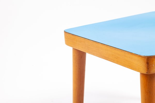 Petite Table D Appoint En Bois Avec Plateau Bleu 1970s En Vente Sur Pamono