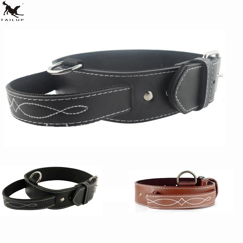 Collier De Grand Chien En Cuir Pu Collier De Chien Robuste Avec Poignee Laisse De Collier Pour Chiens De Compagnie Noire Et Brune Clpu01 Aliexpress