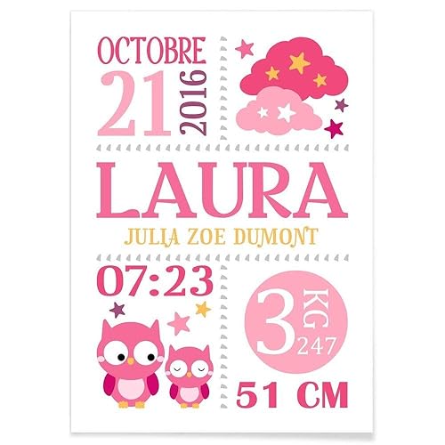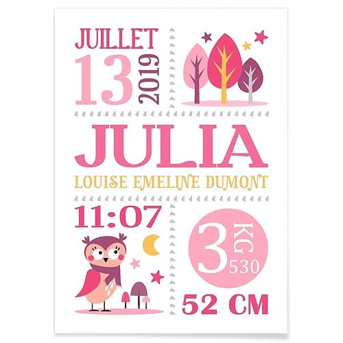 Affiche Prenom Personnalisee Fille Ou Garcon Cadeau Bebe Naissance Prenom Et Informations Naissance Decoration Chambre Bebe Enfant Affiche Murale Chouette Impression Amazon Fr Handmade