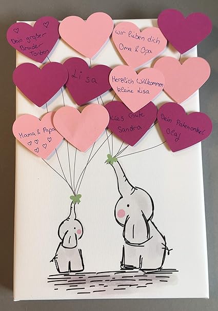 Elefant Toile Coeur Cadeau Ideal Livre D Or Livre D Or Rappel Idee Cadeau De Naissance Bapteme Baby Shower Rose Pour Fille Amazon Fr Bebes Puericulture