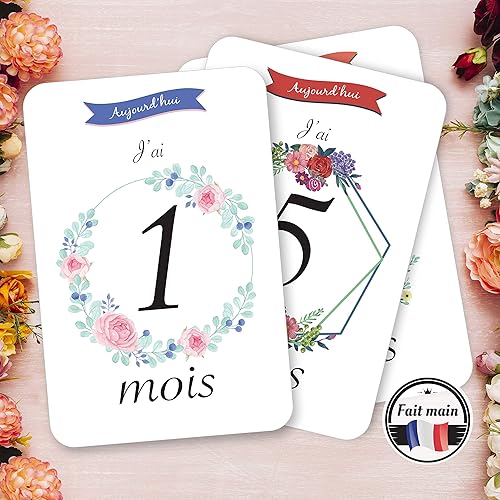 Carte Etape Cartes Etapes Premiere Annee De Bebe Theme Couronnes De Fleurs Carte Etape Bebe Cadeau De Naissance Cartes Bebe Fille Amazon Fr Handmade