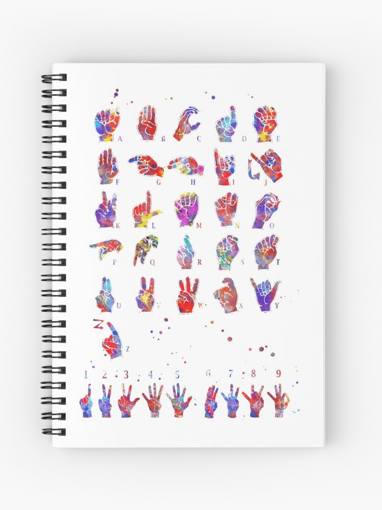 Cahier A Spirale Alphabet De Langue Des Signes Asl Langue Des Signes Aquarelle Alphabet Numero De Langue Des Signes Asl Par Rosaliartbook Redbubble