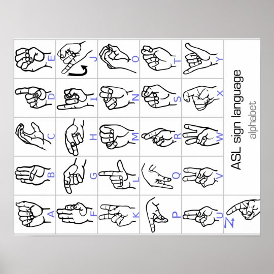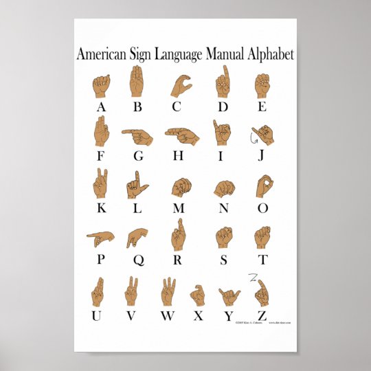 Poster Affiche D Alphabet D Asl De Langue Des Signes Zazzle Fr