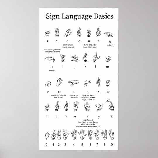 Poster Alphabet Et Nombres De Langue Des Signes Zazzle Fr