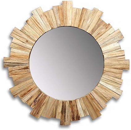 Miroir Mural Rond Moderne En Bois Avec Decoration