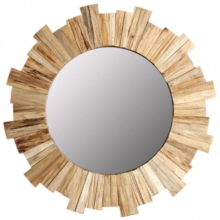 Miroir Mural Rond En Bois Ani 90cm Naturel