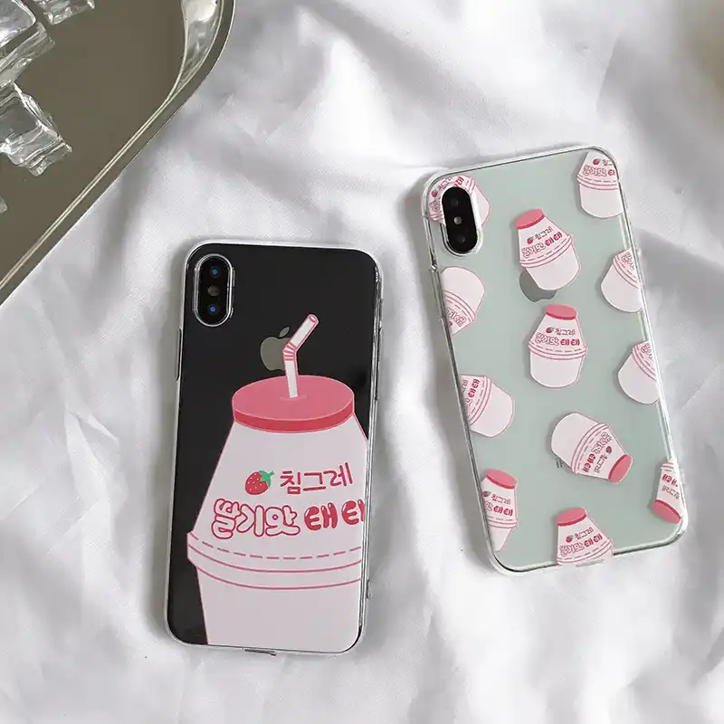For Iphone 8 Case Silicone Cover Cute Strawberry Milk Simple Phone Case For Coque Iphone 7 6 6s 8 7 Plus X Xr 11 Pro Xs Max Case Phone Case Covers Aliexpress