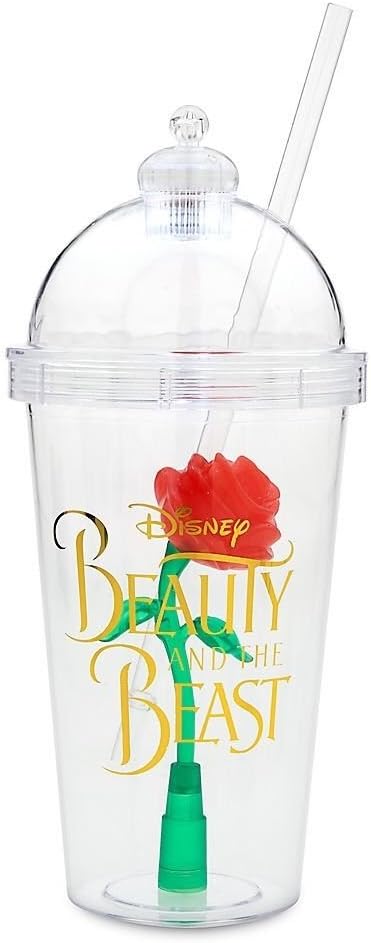 Disney Drink Tumbler Cup Beauty And The Beast Enchanted Rose Acrylic Travel Cup