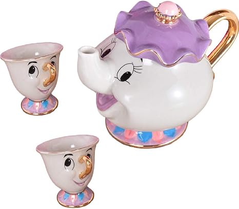 Amazon Com Cartoon Beauty And The Beast Tea Set Mrs Potts Chip Cup Set Sugar Bowl Mug For Gifts Kitchen Dining