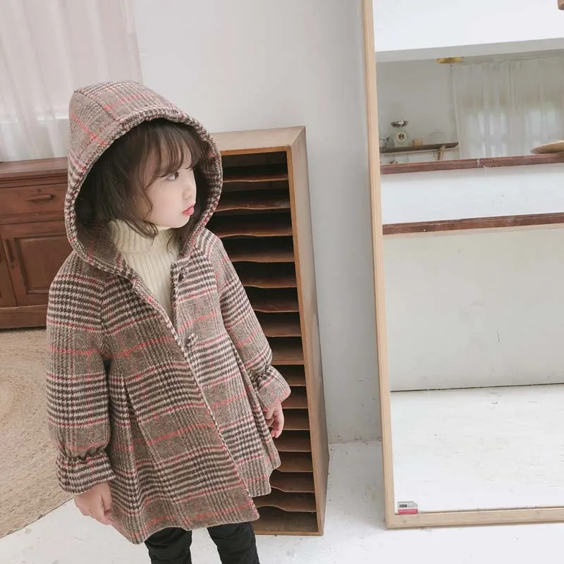 Sengfei Manteau D Hiver En Laine Pour Enfants Manteau D Hiver A Carreaux Pour Filles Vetements D Exterieur En Laine Et Melange Manteau Hariy Long Capuche Aliexpress