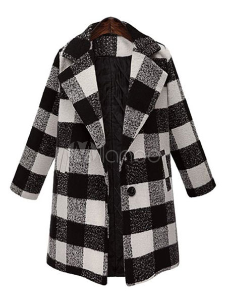 Manteau Noir A Carreaux Femme Col Rabattu Boutons Manteau D Hiver En Laine Milanoo Com