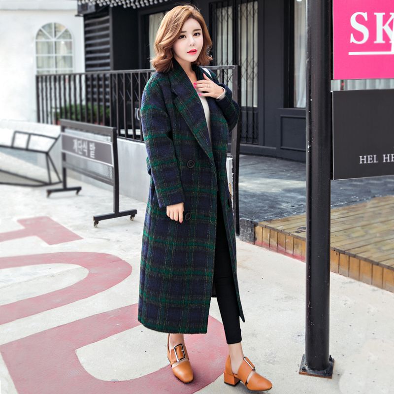 Acheter Mode Vintage Vert A Carreaux De Laine Manteau Femme Survetement Lache Col Rabattu Long Hiver Veste Femmes Epais Vetements Wuj1034 De 145 18 Du Motoshop Dhgate Com