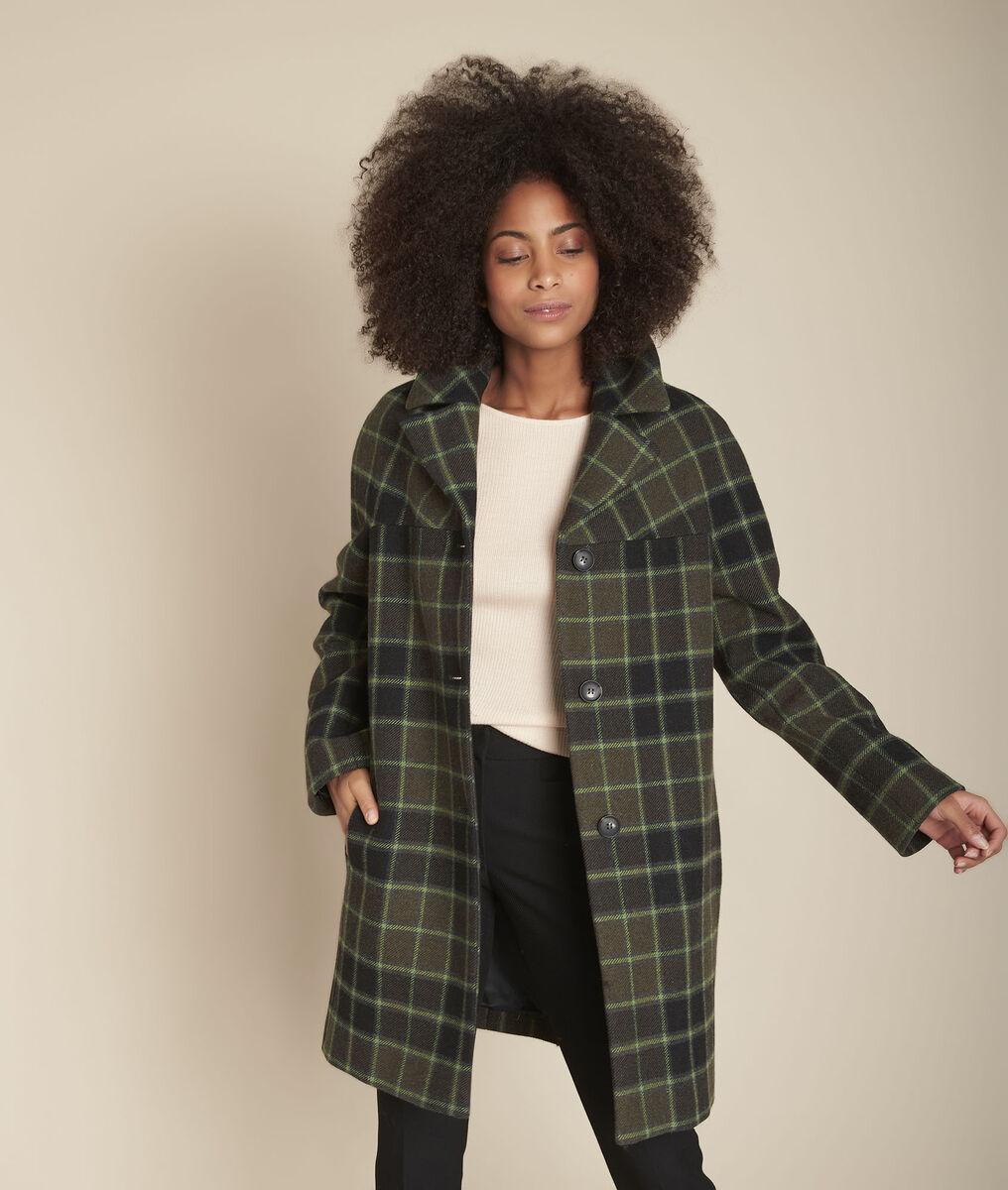 Manteau Vermont Laine A Carreaux Collection Femme Vert