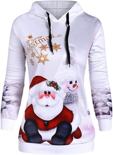 Barkoiesy Pull Fantaisie Noel Femme Tricote Tops Pere Noel Imprime Femme Hoodie Haut Joli Motif De Noel Pullover Manches Longues Casual Fille Manteau Sweat Blouse Amazon Fr Vetements Et Accessoires