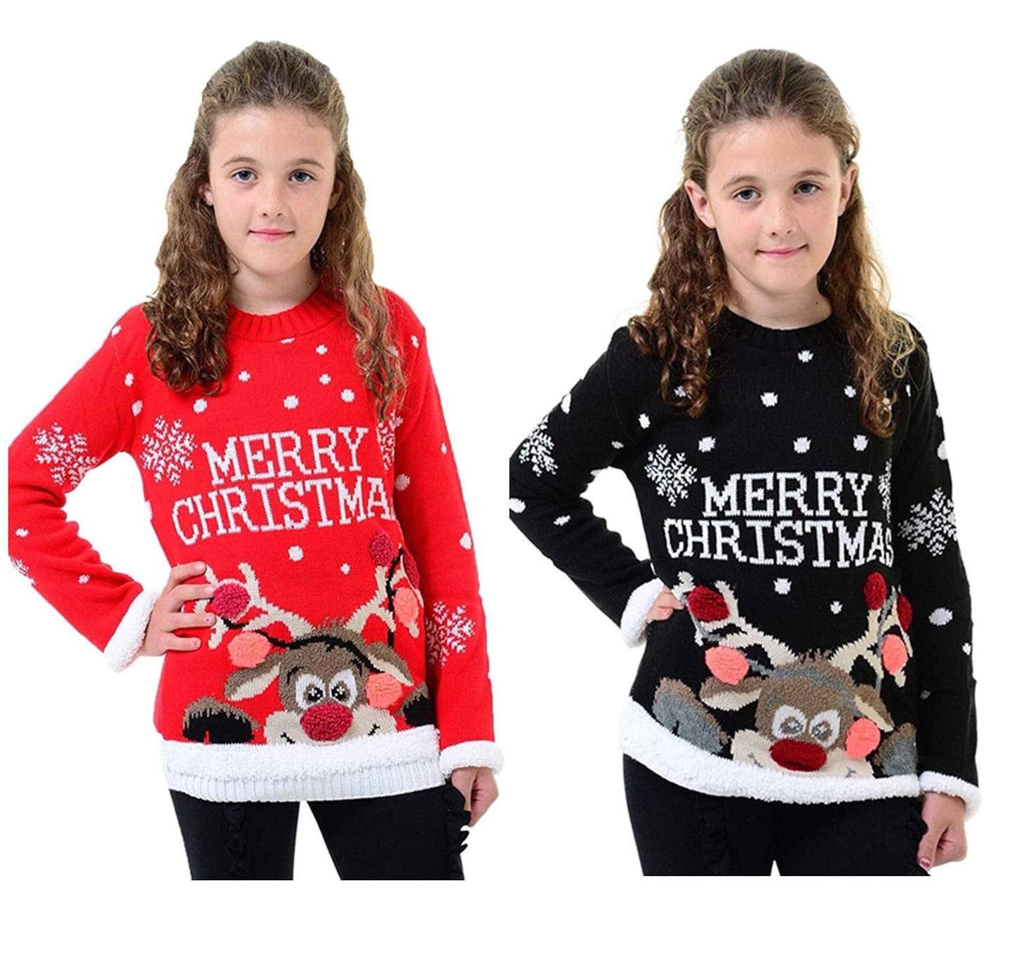 Blush Avenue Enfants Garcon Filles Rudolf Rouge Nez Neige Noel Retro Fantaisie Pull Tricot 2 12 Pulls Et Gilets