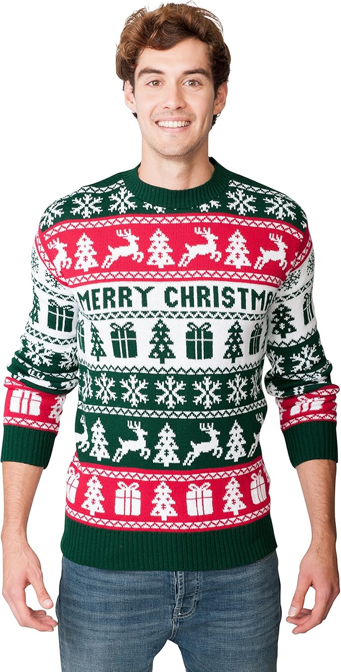 Vous avez envie de faire dans l’originalité cette année et de porter le costume du Père Noël avant le 25 décembre Jour de Fête vous propose alors un large choix d’accessoires et de costumes pour passer des fêtes sensationnelles En effet, il est complètement tendance de porter le fameux pull de Noël à l’approche des fêtes. Apportez une touche de fantaisie à votre Noël avec ce pull chaud et confortable Vous pouvez assortir toutes la famille grâce à ses divers modèles et trouverez le modèle enfant sous le code Ce pull vous est proposé en 5 modèles au choix, selon stock disponible, sélectionnez Rouge/Vert, pour le pull buste rouge, manches. Un pull geek de noël ne vous fait pas ressembler au dernier mannequin à la mode, il vous donne un charme simple et un air festif qui vont de pair avec les fêtes familiales, les fêtes de noëlOn dira même que plus il est moche, plus on l’aime, car il reflète au plus près l’ambiance féerique, lumineuse et colorée de nos retrouvailles en fin d’année.