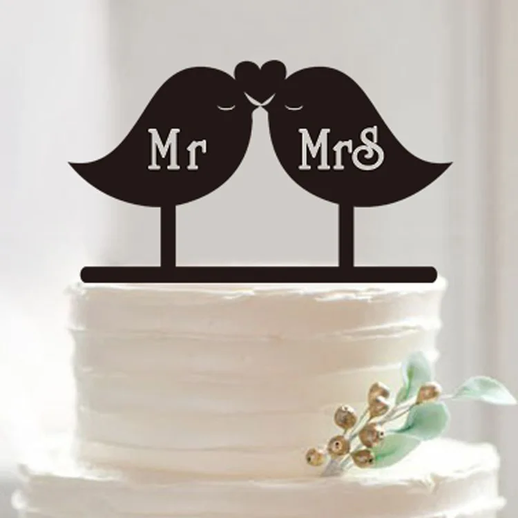 Decoration De Gateau De Mariage En Materiel Acrylique Decoration De Gateau Avec Des Oiseaux De Baiser Mr Mrs Decoration De Gateau Figurine De Gateau Pour Support De Gateau Aliexpress