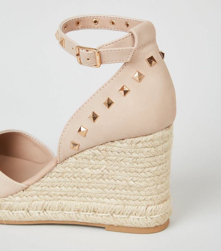 Espadrilles Compensees En Similicuir Rose Pale A Clous New Look