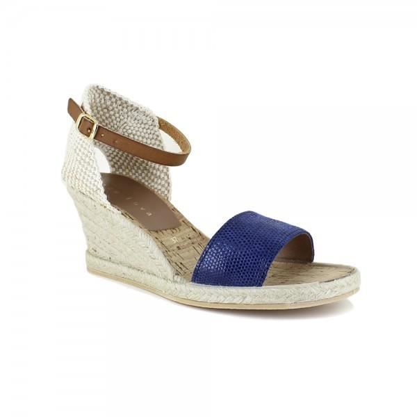 Espadrilles Compensees Pao Cuir Velours Bleu Chaussures 52s5micro
