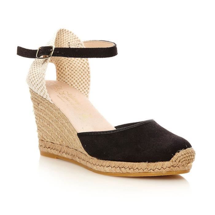 287 Espadrilles Compensees En Cuir Suede Noir Noir Noir Achat Vente Espadrille Cdiscount