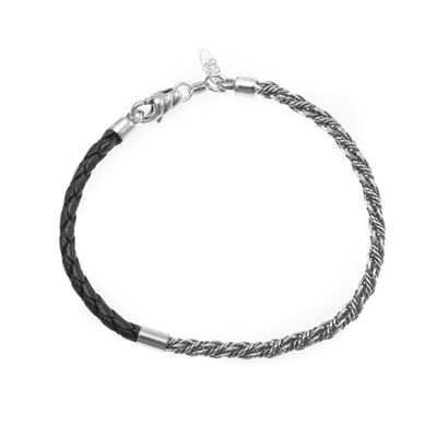 Bracelet Homme Argent Et Cuir Tresses Homme Bracelet Souple Maty
