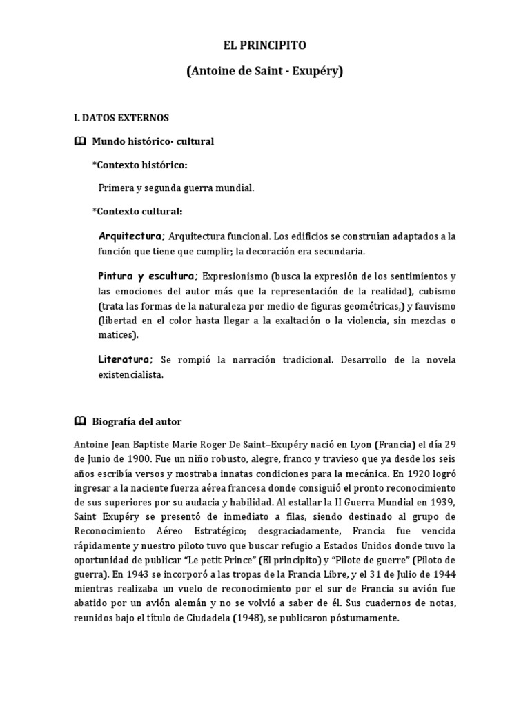 El Principito Antoine De Saint Exupery Resumen En Pdf Gratis