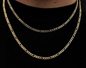 Gold Figaro Necklace 18k Gold Plated Mens Necklace Figaro Etsy Mens Chain Necklace Gold Chains For Men Chains For Men