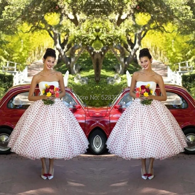 Ynqnfs Ywd108 Chic Robe De Bal Longueur De The Points Rouges Et Blanc Mariage Robe Vintage 50s 60s Aliexpress